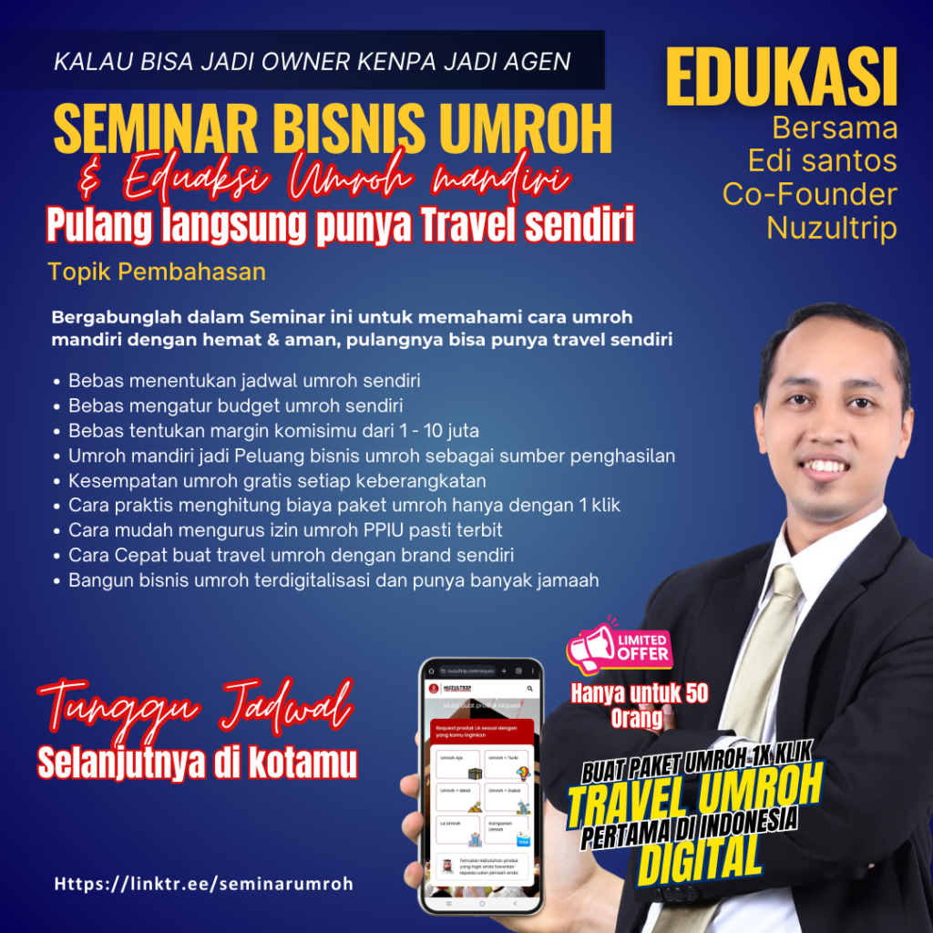 Ikuti Acara seminar bisnis umroh dan Edukasi umroh mandiri di kotamu